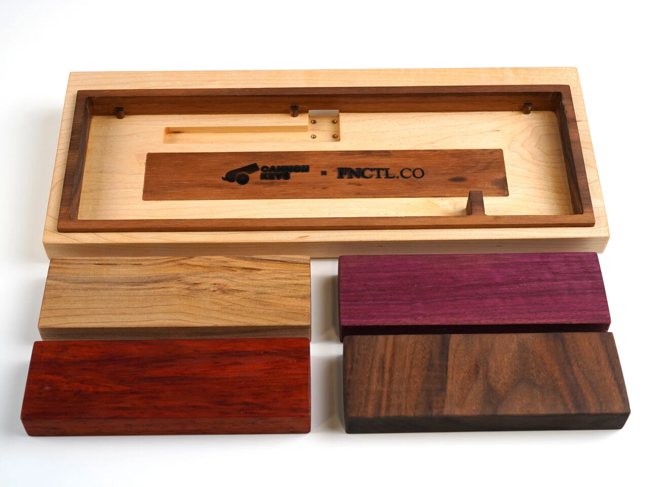 Wood Bakeneko65 стала результатом сотрудничества CannonKeys с базирующейся в Сиэтле мастерской Functional.co, которая отвечает за изготовление корпуса. При этом общая архитектура клавиатуры осталась верна классическому дизайну Bakeneko65 с tray-mount-креплением. В комплекте предусмотрены O-ring для альтернативного способа установки, плата FR4 и финишная обработка дерева маслом Rubio Monocoat Pure 2C с отвердителем, что должно обеспечить как выразительный внешний вид, так и долговечность. Дополняет образ кастомная деревянная коробка, подчёркивающая статус продукта.