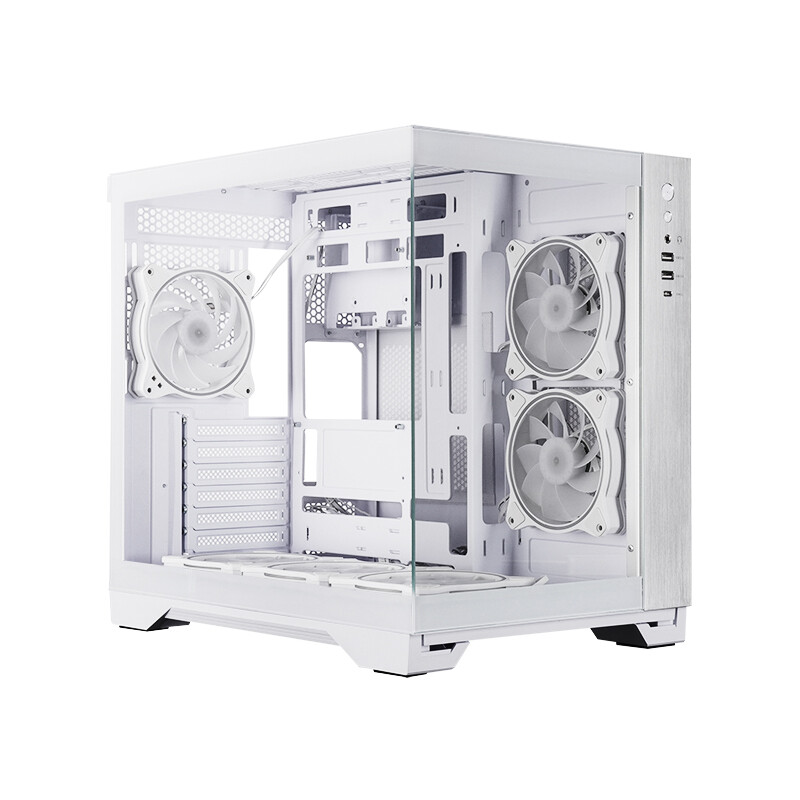 Но главная «фишка» Visio White — это его адаптация под самые современные тренды. Он полностью совместим с новейшими материнскими платами с обратными разъемами (back-connect), позволяя скрыть все провода за поддоном и добиться абсолютно чистой сборки. Корпус оснащен фильтром от пыли в нижней части и вентиляторами на вдув с обратными лопастями, что не только оптимизирует воздушный поток для максимального охлаждения, но и делает вид вентиляторов изнутри более эстетичным. Дополнительный премиальный штрих — стильная алюминиевая передняя панель.