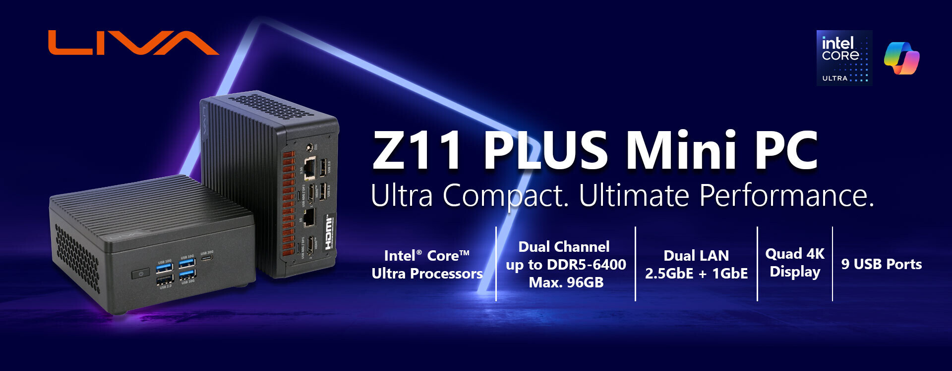 Компания ECS (Elitegroup Computer Systems), вслед за дебютом на выставке Computex, официально представила новую серию мини-ПК LIVA Z11 PLUS. Эта ультракомпактная система объемом всего 0.71 литра (114.4 x 114.4 x 54.5 мм) спроектирована для работы с новейшими процессорами Intel Core Ultra — как из Series 1 (Meteor Lake), так и из Series 2 (Lunar Lake).