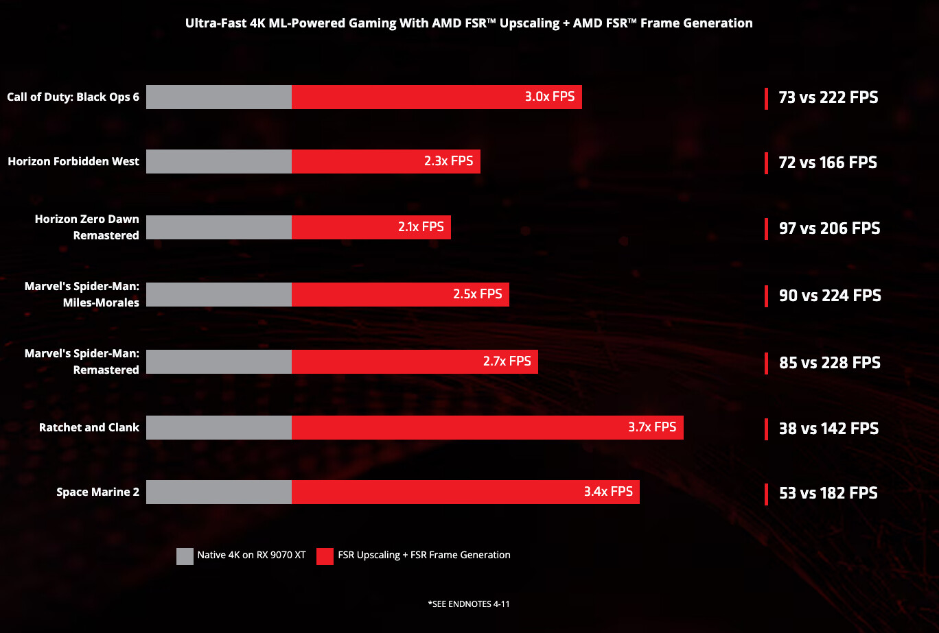 - Четкость в движении: FSR 4 с масштабированием на основе машинного обучения обеспечит стабильные края объектов и легко читаемые текстуры, что крайне важно для стабильного прохождения трассы.