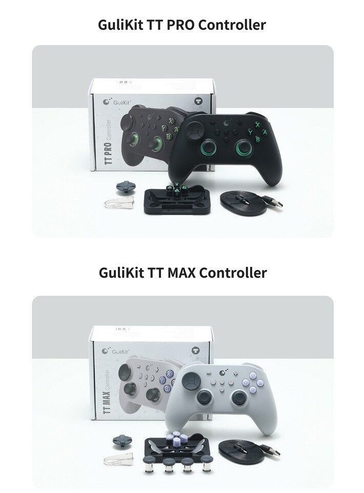 По заявлению компании, TT MAX и TT PRO позиционируются как одни из самых быстрых беспроводных контроллеров на рынке. Это достигается за счёт комплектного адаптера Hyperlink 2, а также использования симметричных стиков с магнитными датчиками TMR и возможностью регулировки усилия в диапазоне до 720 градусов. Отдельный акцент сделан на сменной плавающей крестовине, которую GuliKit считает особенно подходящей для файтингов и других жанров, требующих высокой точности ввода. Приятным бонусом станет поддержка функции пробуждения Nintendo Switch 2 и оригинальной Switch напрямую с контроллера.