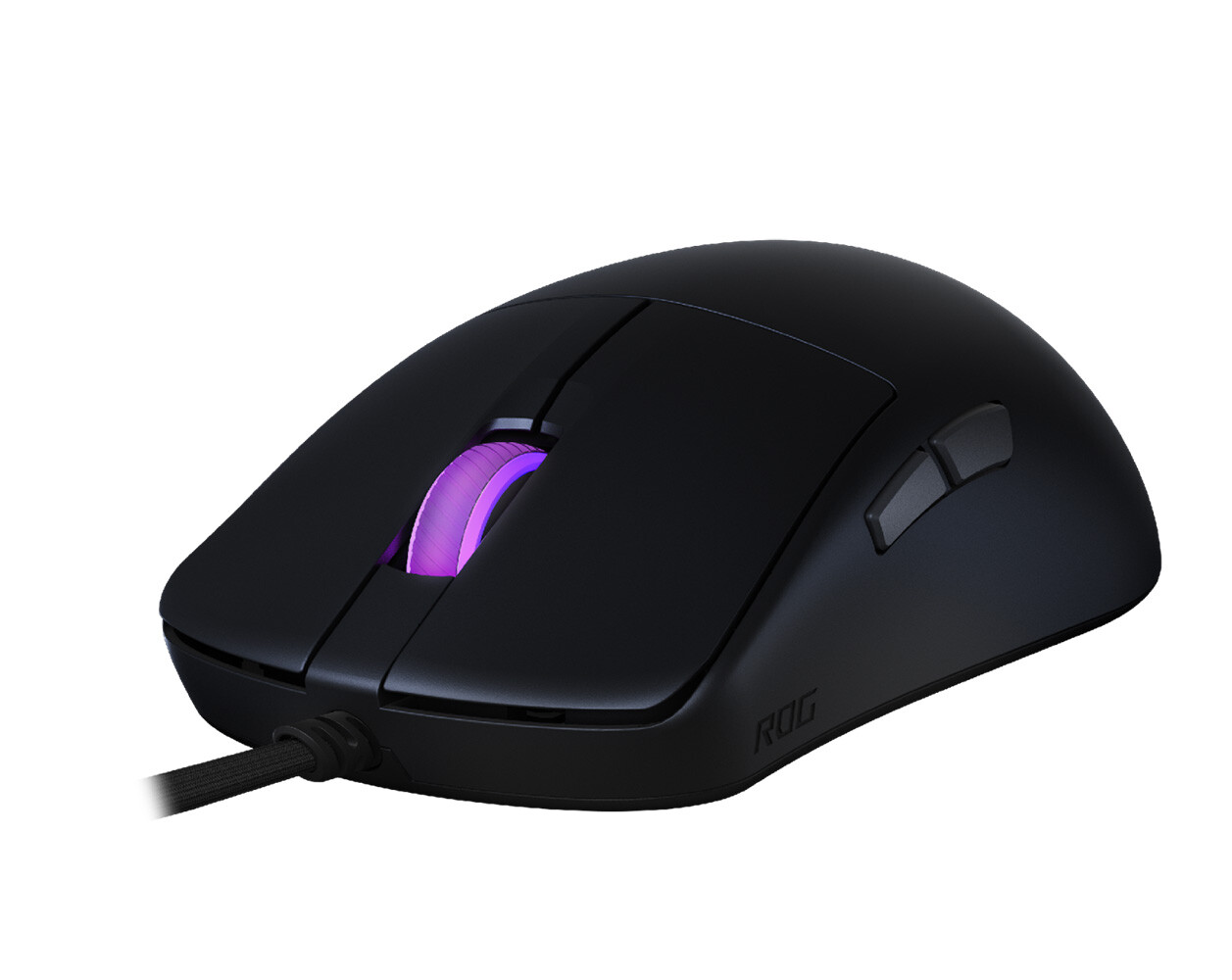 Основные кнопки мыши оснащены съемными переключателями ROG Micro Switch II, что позволяет пользователю легко заменить их в случае поломки или просто для изменения тактильных ощущений. Внешний вид мыши сохраняет фирменный стиль ROG: логотип сверху подсвечивается красным цветом, а колесико скролла украшено RGB-подсветкой. Для минимализма и исключения случайных нажатий, переключатель чувствительности DPI расположен на нижней части корпуса.