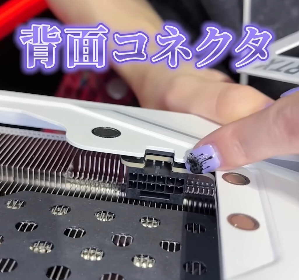 Японский YouTube-блогер запечатлел на видео, как разъем был перенесен с традиционного бокового расположения на торец печатной платы, под радиатор. Такое решение позволяет вывести питающий кабель назад и скрыть его за съемной задней панелью, что делает провод практически невидимым внутри корпуса. Для этого MSI, очевидно, немного удлинила печатную плату, чтобы разъем был направлен прямо к лотку материнской платы, избегая необходимости в резком 90-градусном изгибе кабеля.