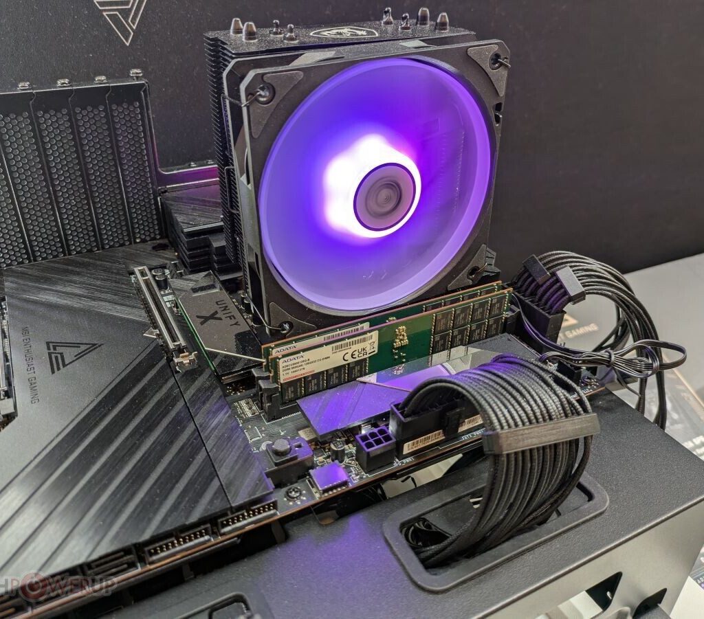 В партнёрстве с ADATA MSI тестирует четырёхранговые DDR5 CUDIMM, позволяющие достичь больших ёмкостей на одном модуле, при этом демонстрируя улучшенные разгонные возможности по сравнению с обычными DDR5 DIMM без активного управления частотой. Пока точные сроки релиза платформы не объявлены, компания планирует запуск этих плат в ближайшем будущем, когда цены на память стабилизируются и будут устранены возможные технологические нюансы.