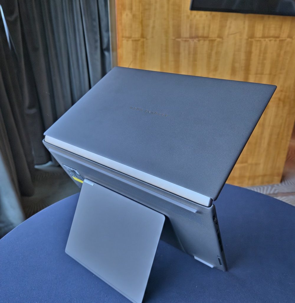 Одним из ключевых инженерных достижений нового поколения стало уменьшение габаритов без потери функциональности. Zenbook DUO стал примерно на 5% компактнее по сравнению с предыдущей версией, сохранив тот же вес, но предложив более плотную и аккуратную компоновку. Это особенно заметно в зазоре между экранами, который сократился примерно на 70%, сделав конструкцию визуально и тактильно более монолитной.