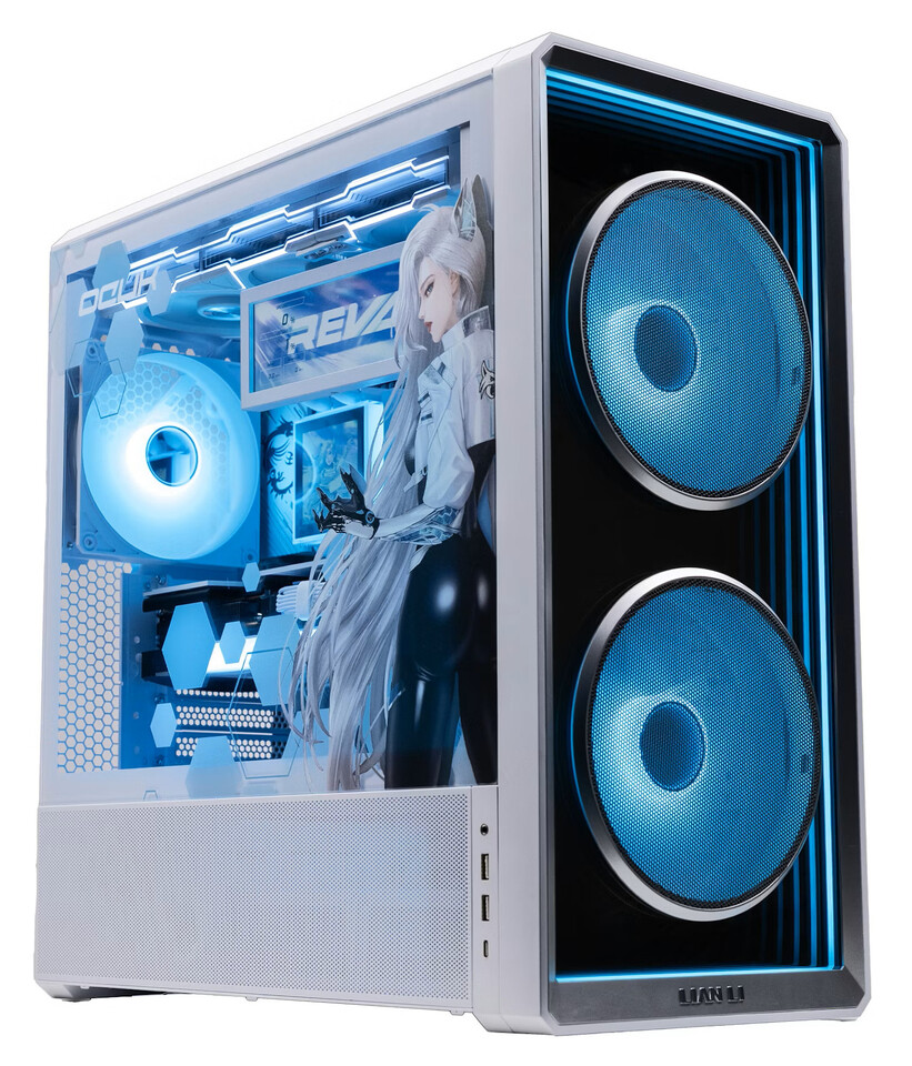 Система собрана в корпусе Lian Li LANCOOL 217 Infinity, который сочетает продуманную вентиляцию и выразительный внешний вид. Корпус дополнен фирменной графикой Reva, нанесённой специалистами Overclockers UK. Визуальную концепцию поддерживают кастомизированная система жидкостного охлаждения Lian Li HydroShift II LCD-S 360 и дополнительный экран Lian Li 8.8″, что придаёт сборке футуристичный и киберпанковский характер.