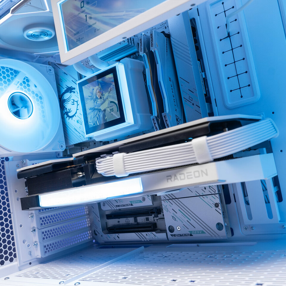 За графическую подсистему отвечает флагманская видеокарта Radeon RX 9070 XT в эксклюзивной версии Hellhound REVA Edition от PowerColor. Специальное издание дополняется тематическими коллекционными аксессуарами, включая карточки с изображением персонажа, значки и коврик для мыши. В сочетании с мощным CPU это решение ориентировано на стабильную работу в разрешении 4K и высокий уровень кадровой частоты в требовательных проектах.