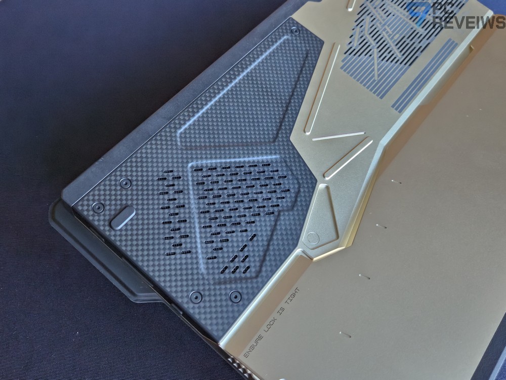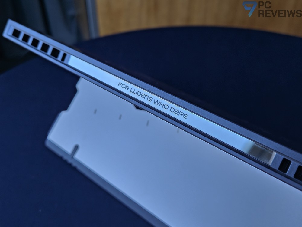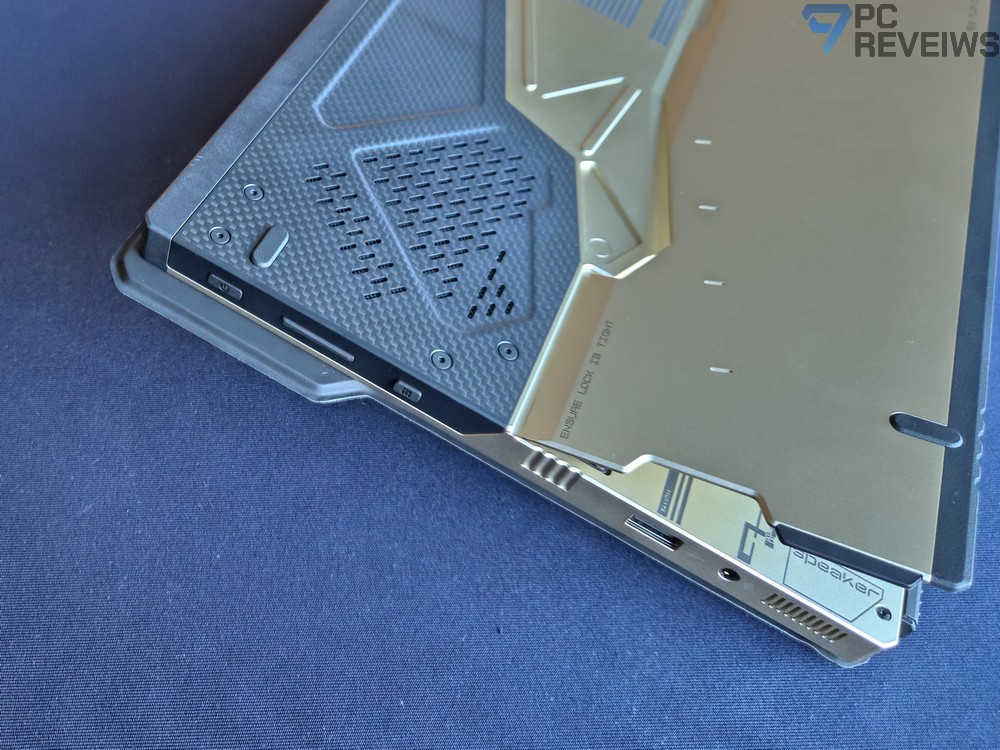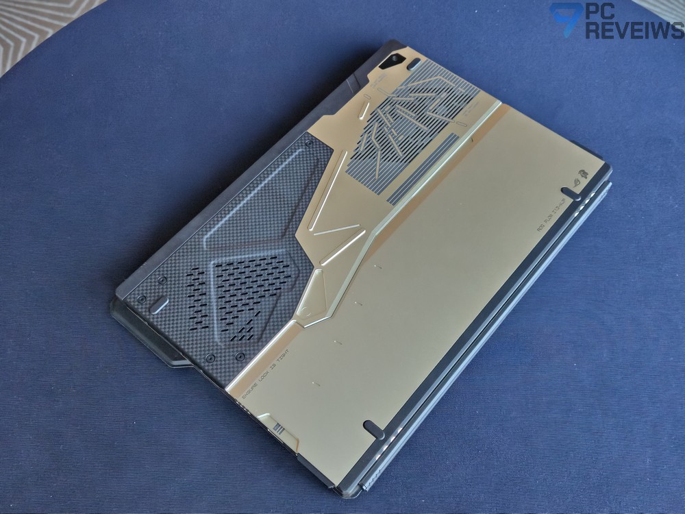 Особое внимание привлекает тыльная сторона устройства. Именно здесь сосредоточена визуальная доминанта Flow Z13-KJP: прозрачные и полупрозрачные элементы, сложный рельеф, подсвечиваемая зона с логотипами и характерные «технические» акценты, создающие ощущение, будто перед нами не потребительский гаджет, а экспериментальное устройство из научно-фантастического мира. При этом вся эта выразительность не мешает практичности: корпус остаётся жёстким, не скручивается под нагрузкой и хорошо переносит мобильное использование.