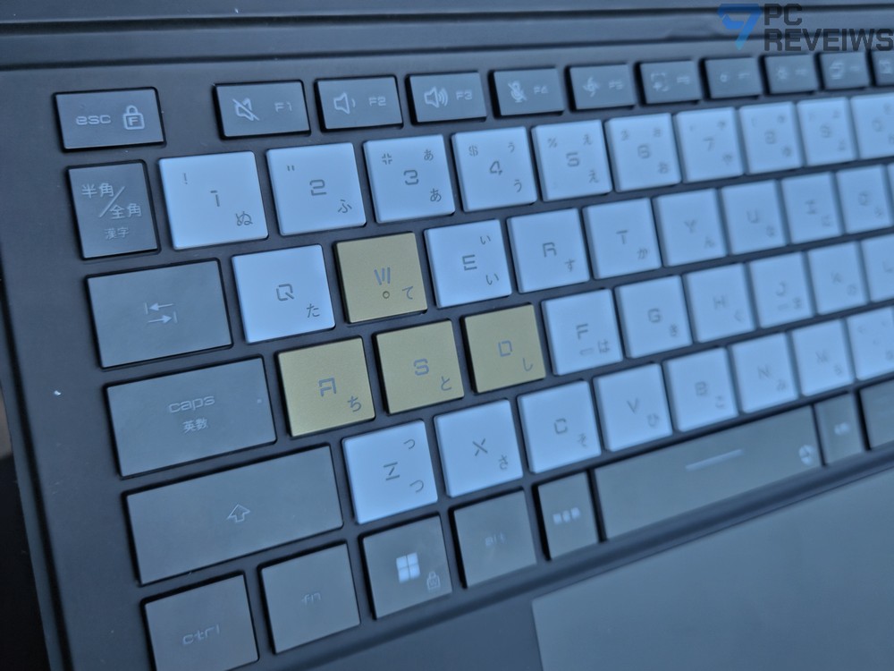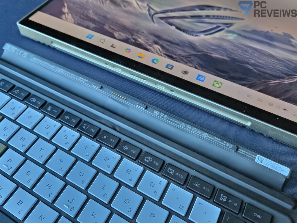 Съёмная клавиатура — ещё один важный элемент, который отличает Flow Z13-KJP от традиционных игровых ноутбуков. Она подключается магнитным креплением, плотно фиксируется и визуально воспринимается как продолжение корпуса. В закрытом состоянии устройство выглядит как цельный ноутбук, без ощущения компромисса или «временного решения». При этом сама клавиатура заметно тоньше классических ноутбучных блоков, что сразу выдаёт её гибридную природу.