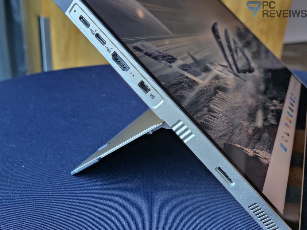 Набор портов также демонстрирует редкое для планшетных устройств сочетание универсальности и практичности: два USB-C USB4 порта с поддержкой Thunderbolt и DisplayPort 2.1, питание до 100 Вт через Power Delivery, один порт USB-A 3.2, HDMI 2.1 для подключения внешних дисплеев, microSD-ридер (UHS-II) для быстрого обмена данными с камерами и прочими устройствами, а также стандартный 3.5 мм аудиоразъём. Такая конфигурация делает Flow Z13-KJP пригодным не только как автономная платформа, но и как центр мобильного рабочего пространства, способного выступать в роли хаба для внешнего монитора, периферии и аудиосистемы.