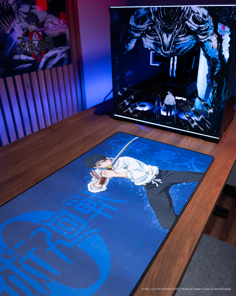 Однако настоящая изюминка, которая сделает этот ПК мечтой фаната, — это корпус с кастомной УФ-печатью. На нем изображены ключевые персонажи фильма, включая, разумеется, легендарного Годжо Сатору. Весь комплект ПК, который включает системный блок, коврик для стола и настенное искусство, доступен по цене $2399.99.